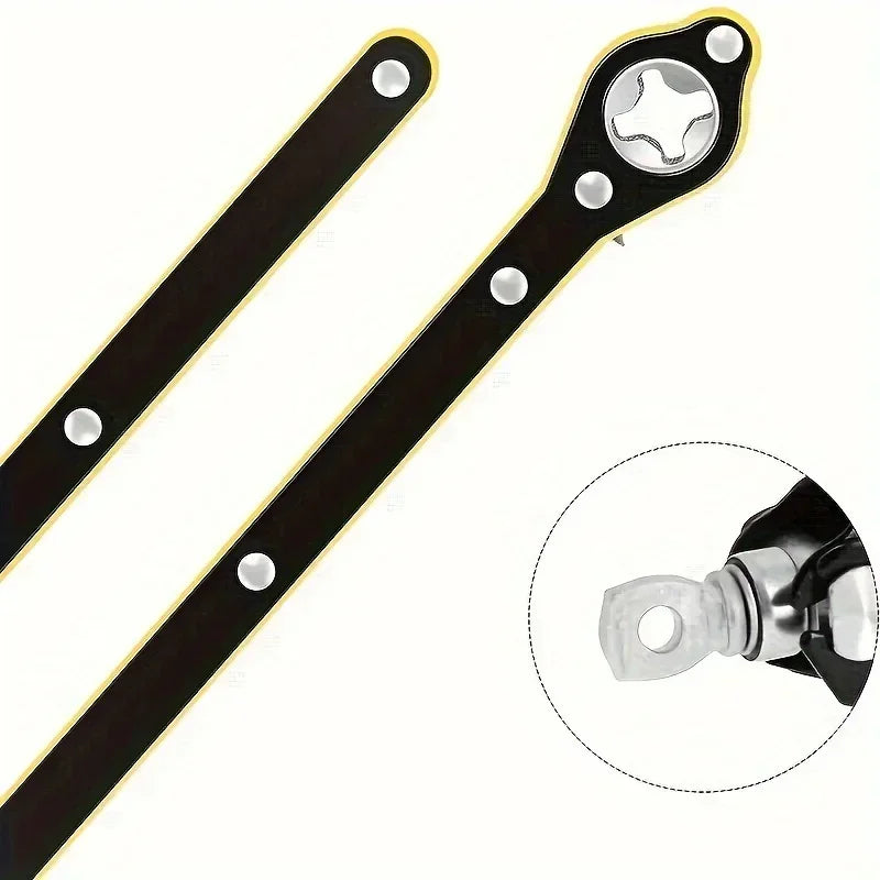 Com o sistema de alavanca e catraca, a Chave Cruz Automotiva com Catraca Ferramenta para Troca de Pneu aumenta a força aplicada, facilitando a remoção de parafusos apertados.